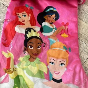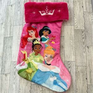 Colorful Disney Princess stocking. Features beloved characters. Perfect for holiday decor.