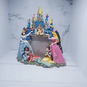 Disney Princess Frame featuring the Disney Castle, Snow White, Cinderella, Jasmine, Belle, Arielle, and Aurora