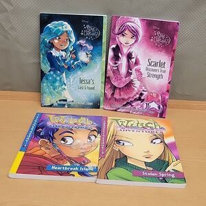 A nice group of paperback for your readers. 2 Disney Star Darlings books..Scarlet Discovers True Strength and Tessa's Lost and Found. Also 5 Witch Adventures..Stolen Spring and Heartbreak Island, Whispers of Doubt, The Power of Five, & The disappearance. Also Disney Descendants 2, Wellspring of Magic, and the power of poppy Pendle. All are in great shape. Preowned.