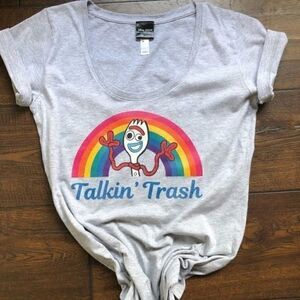 Disney Talking Trash T-shirt. Ladies size Small. Laying flat armpit to armpit 17”.