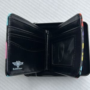 bi-fold wallet is made from premium vegan leather. It measures 4.0x3.5x0.5 Inches, and features the standard billfold, 5 card slots, and windowed ID holder. This product is made by Buckle-Down, Inc. and Officially Licensed by Disney.