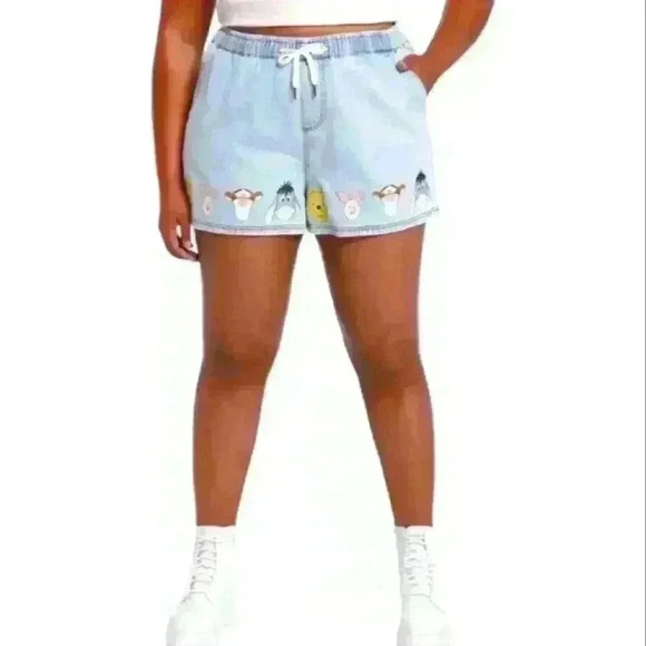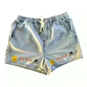 Disney Winnie The Pooh Faces Drawstring Denim Shorts Size XL.