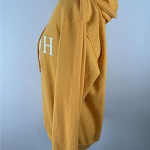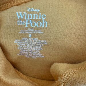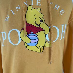 Cozy Disney hoodie featuring Winnie the Pooh. Yellow color with playful design. Measurements in photo.