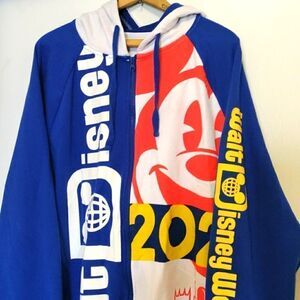 Disney World color blocked zip up hoodie. In very good condition, no major flaws. See photos for details. W 28" L 29"