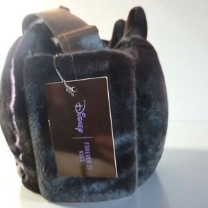 Elegant soft plush bag by Forever 21 and Disney. Features a sleek black design with purple accents.