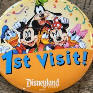 Celebrate your first visit with these colorful Disneyland buttons. Features beloved characters and vibrant colors. Set of 2! 3” diameter.