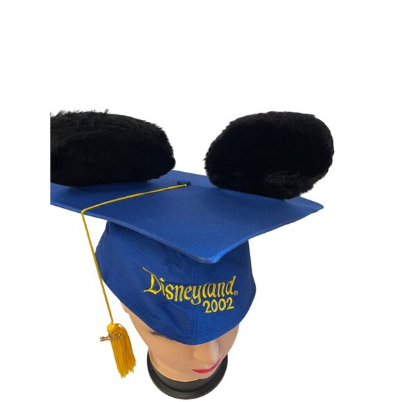 This unique Disneyland graduation cap from 2002 features the iconic Mickey Mouse ears. A symbol of accomplishment, it combines the joy of Disney with a sense of achievement. The classic blue cap is adorned with a golden tassel, making it a delightful keepsake for any Disney enthusiast.