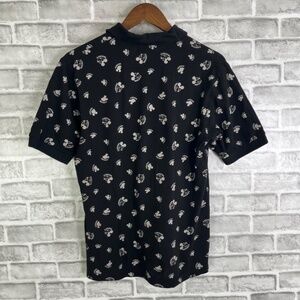 Disneyland Hong Kong Mickey All Over Print Polo Shirt Mens Medium Primary Black