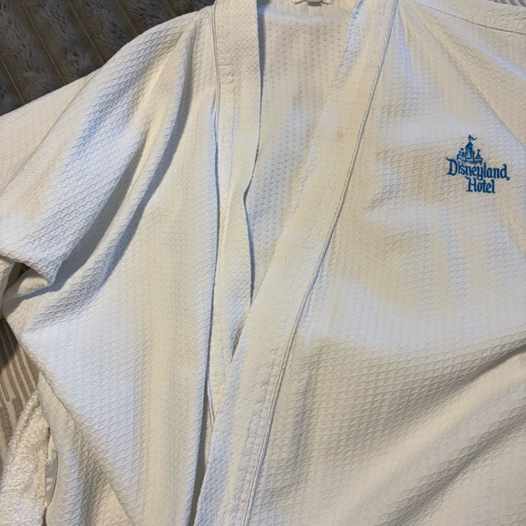 Luxurious white robe with Disneyland Hotel logo. Perfect for relaxation.