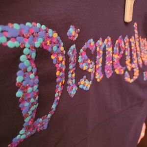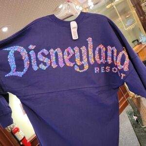 “You’ll simply sparkle at the Disney Parks in this pullover Spirit Jersey with puffy, multicolor Disneyland logo, Fantasyland Castle silhouette, and a burst of colorful dots with glitter accents”