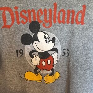 Walt Disney Disneyland Mickey Mouse Pullover Jumper Crewneck Sweatshirt Grey Size Medium the stock photo is AI generated so it’s not the exact sweatshirt. The Disneyland coloring is blue instead of red. The one I’m selling is like a red burgundy.