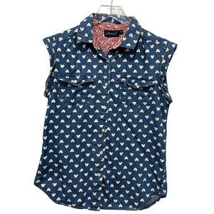 Disneyland Paris Size 36 Chambray Mickey Mouse Shirt Cap Sleeve Button Down