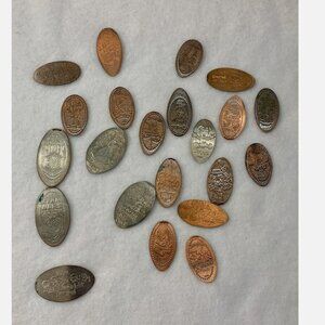 Fun mixed lot of Disneyland pressed/elongated coins from multiple trips (various years). 22 pieces (please see photos to verify). Themes include, among others: