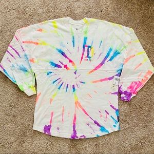 Limited edition Disneyland Splatter Spirit Jersey with a unique neon rainbow tie dye design. Sold out online and hard to find item. Size Small. 100% cotton.