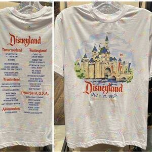 This vintage-inspired tee features nostalgic Disneyland July 17, 1955 grand opening attractions and icons, such as Main Street USA, Fantasyland, Adventureland, Frontierland, and Tomorrowland, complete with the catchphrase visiting 160 acres of happiness. Perfect for any Disney fan or for reminiscing about your magical trip to the park.