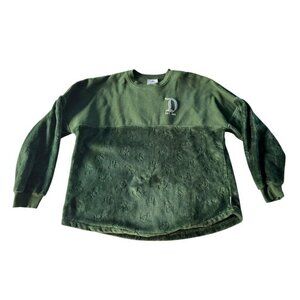 Mickey Mouse Spirit Jersey Walt Disney World Resort. Sweatshirt is dark emerald green. It's made of 100% soft plush polyester and is a unisex size XL.