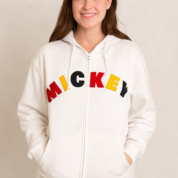 Disneyland Resort Mickey Mouse White Zip-Up Hoodie – Unisex Size M