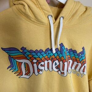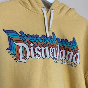 Gear up for your next trip to the parks with this yellow multicolor graphic Disneyland resort hoodie. Still available in the parks!