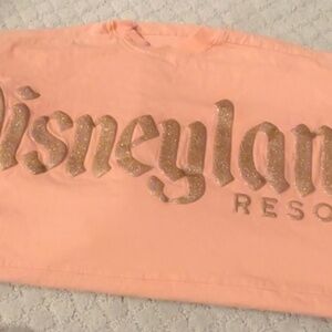 Bring a little pixie dust into your wardrobe with this gorgeous peach Disneyland Resort Spirit Jersey! 💫 Featuring bold glittery lettering across the back, this cozy long-sleeve is perfect for park days, Disney movie nights, or just adding some everyday magic to your outfit. 🌸