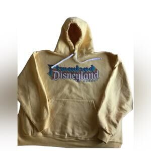 Disneyland Retro Style Yellow Hoodie , multicolor layered logo. Size L . Good condition no tears or holes, there is some slight stain spots on body and sleeve , I have not washed to try and remove the spot areas ( please see pictures) . Also very slight cracking on the logo letters. Measures 25 inches across the middle of the body 25 inches from the shoulder seam to the bottom of the hem, Sleeve is 29 inches from the neck seam to the tip of sleeve hem .