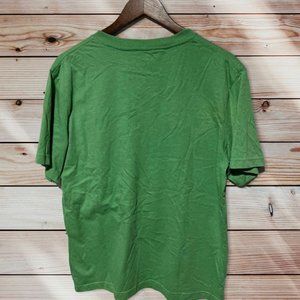 Great condition v-neck t-shirt from Disney Parks! Classic green with navy screenprint. Letters are fuzzy and sewn on top. Short sleeve and super soft cotton. No rips, stains, or tears. No cosmetic damage.
