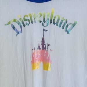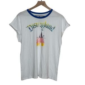 Disneyland Womans Size Large White Blue Crew Neck Short Sleeve T Shirt
