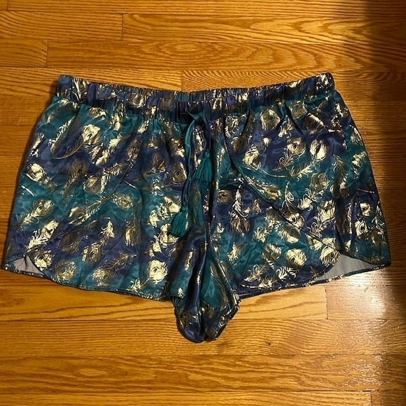 Disney’s Aladdin Gold Feather Print Teal Lightweight Pajama Shorts 2XL