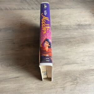 Disney's Aladdin VHS. Features Aladdin, Jasmine, and Genie on a magic carpet. Iconic animated adventure. Works.