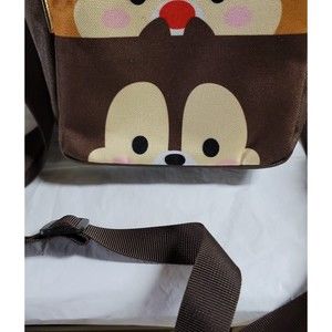 Chip and Dale Crossbody Bag, with a zippered pouch in the front, and a velcro closure on the back. Bag has plenty of room inside. Bag is new, without tags. Matching Chip and Dale Tsum tsums are included.