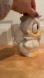 Ceramic Donald Duck pitcher in good use condition. Bottom shows some wear, there is a small chip on the one side of his “foot”, and a paint speck by his one eye (please see photos).