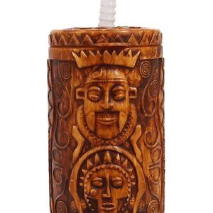 This plastic tiki mug from Disney's Enchanted Tiki Room comes with a tight-fitting lid and sipping straw.