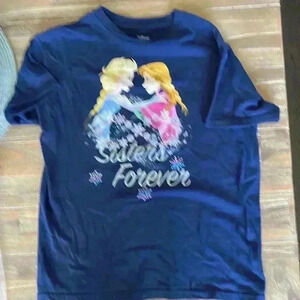 Great used condition t-shirt. Navy with Anna and Elsa.