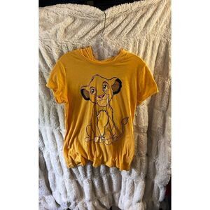 Disney's The Lion King t-shirt with Simba on the front. His chest has a patch of velvet and the hood has ears and a patch of hair in the middle. It's a Large but it fits a lil small to true to size (so juniors large in other words) NWT( original price ripped off but original Walmart tag still on it )