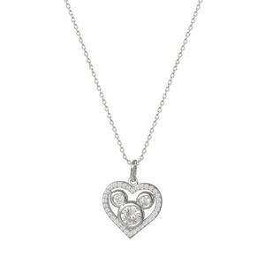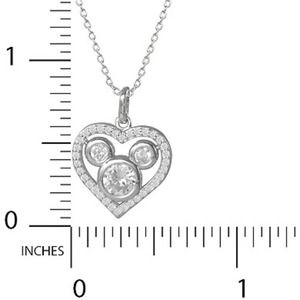Disneys Mickey Minnie Mouse CZ Heart Pendant Necklace 1.5 ct. Total Weight