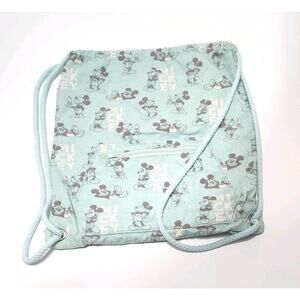 Disney's Mickey Mouse Aqua Blue Cotton Cinch Sack Bag Front Pocket
