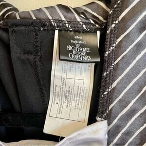 Details: Jack Skellington mini dress gender-bend Disney’s Tim Burton’s Nightmare Before Christmas stripe bow puff sleeves ruffles and frills high collar for regal vibes layered skirt Velcro