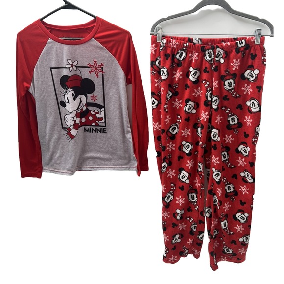 Disneys Pajama Set Minnie Mouse Womens Small Top & Pants Christmas Red Mickey