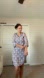 Stylish dress with a blue and pink pattern. Features a comfortable fit and three-quarter sleeves. Model is 5’7” weighing 145. Gently used, offers welcome.