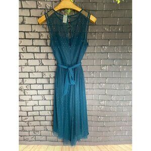 Disney's Snow White Collection Teal Asymetrical Tulle w/ Sequins Fit and Flare Party Dress 4