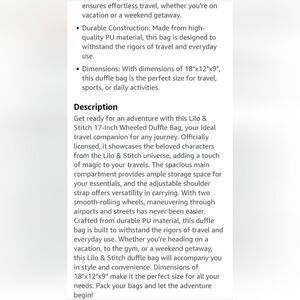 Disney's Stitch Logo Rolling Travel Duffel Bag