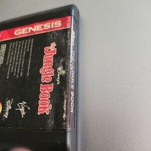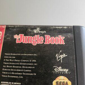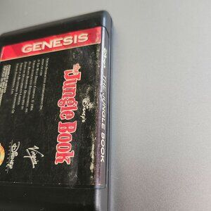 This Sega Genesis game cartridge features Disney's The Jungle Book. A classic platformer offering a nostalgic gaming experience, it showcases vibrant graphics and engaging gameplay, designed to entertain and challenge players of all ages.