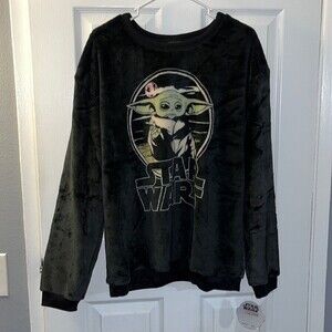 The black fleece sweater features a cute Grogu graphic on the front, making it a perfect addition to any fan's wardrobe. It's unisex and comes in size XL, so it's perfect for adults who want to stay comfy while showing off their fandom.