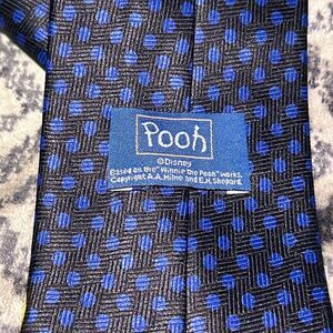 This fun and playful Tigger necktie is perfect for any Winnie the Pooh fan! It features a colorful Tigger print on a navy blue background with polka dots.