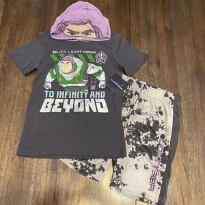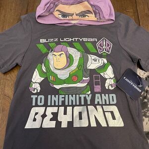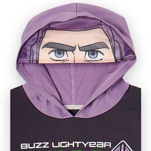 T-shirt features: Relaxed fit; pullover style; crewneck; attached hood with partial character mask; short sleeves; graphic at front