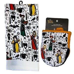 1- 2 pack set of Disney Hocus Pocus Kitchen Dish Towels. The towels are 100% cotton 16x26 and features The Sanderson sisters.