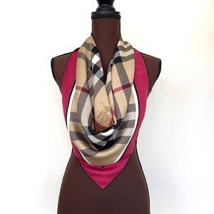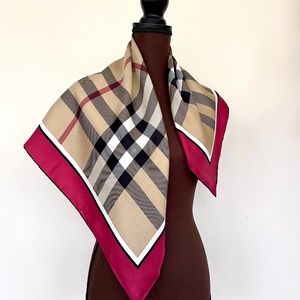 Authentic Burberry Classic Check Pattern Silk Scarf