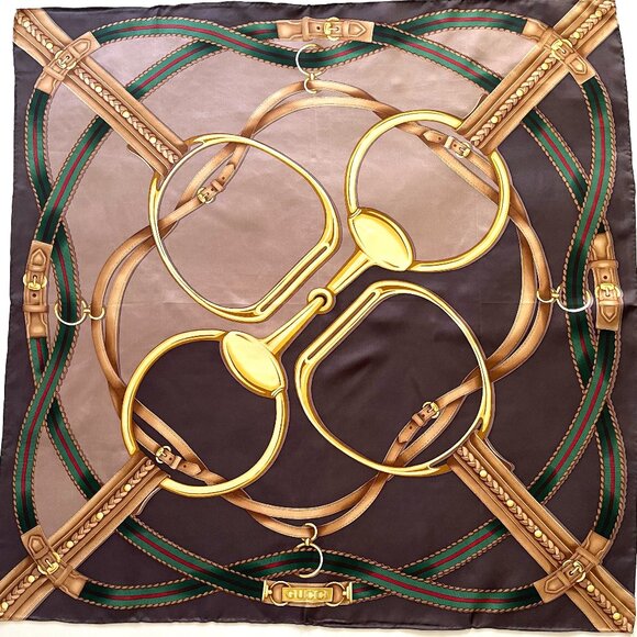 Authentic Gucci Iconic Horsebit Logo Print Silk Scarf