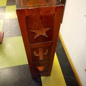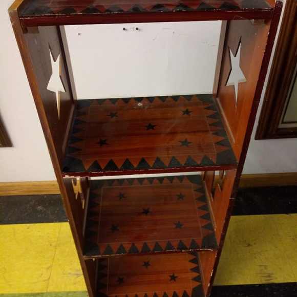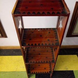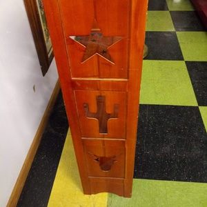 wooden display case with carved out stars & cactus design. Wood & black. Great condition