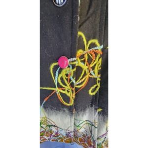 Display Paris Double Breasted Embroidered Trim Black Coat M