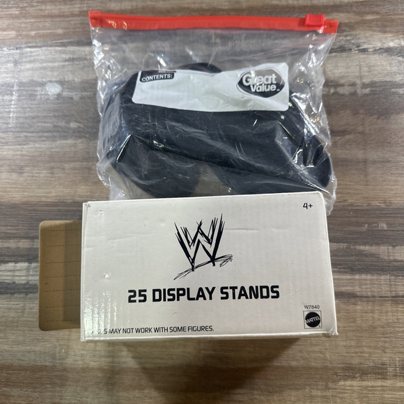 The Display Stands Base 30+ Set consists of figure stands made of plastic, specifically designed for action figures in a 1:12 scale. These stands are part of the WWE franchise and are original, not licensed reproductions. Each stand is 6 inches tall and has been professionally graded by the Action Figure Authority (AFA). Made in China, this set is perfect for organizing and displaying your collection of action figures in a visually appealing manner.
